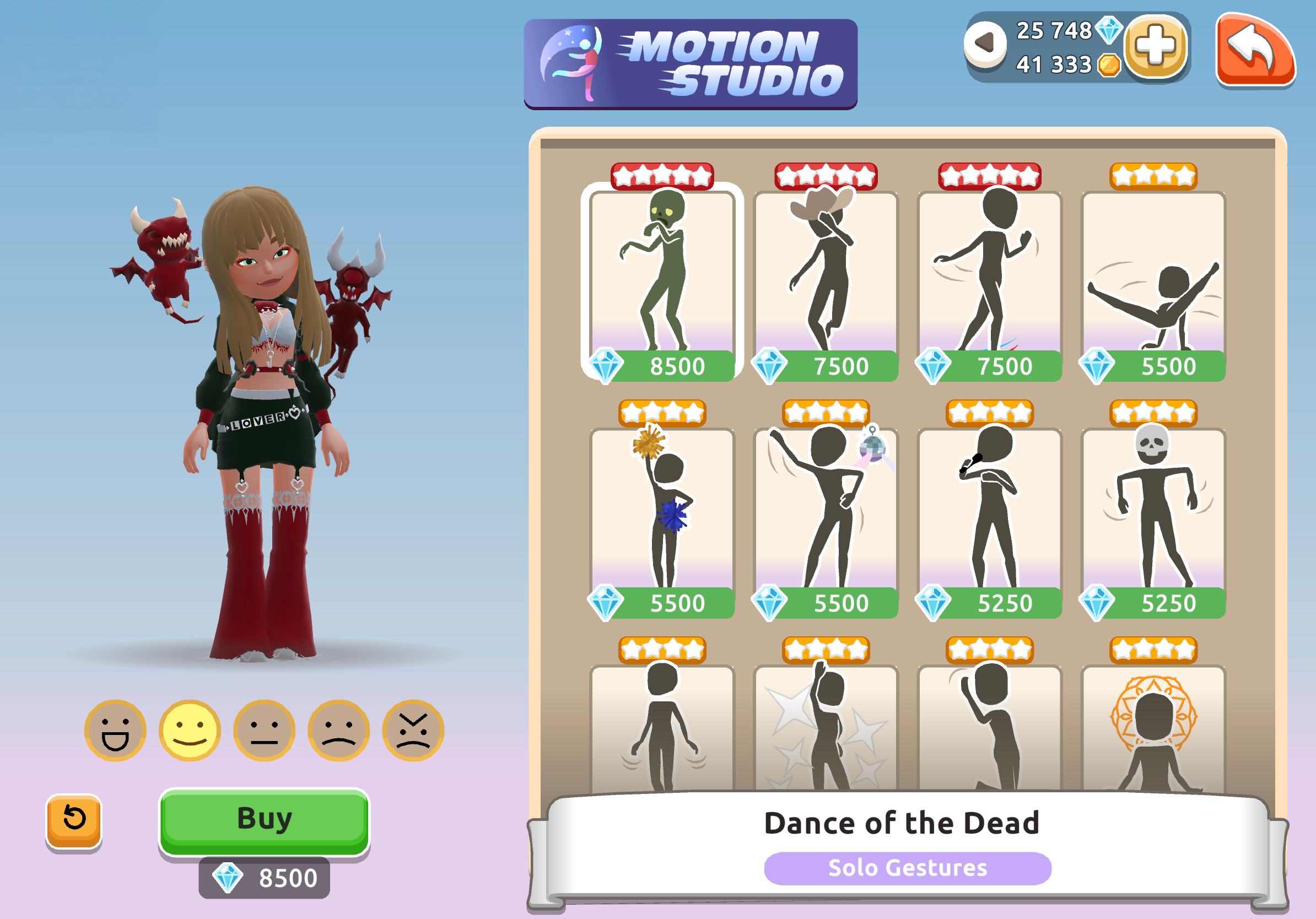 The Motion Studio shop is on the right side of the room. It's represented by a dance game arcade and you can buy gestures and dances.