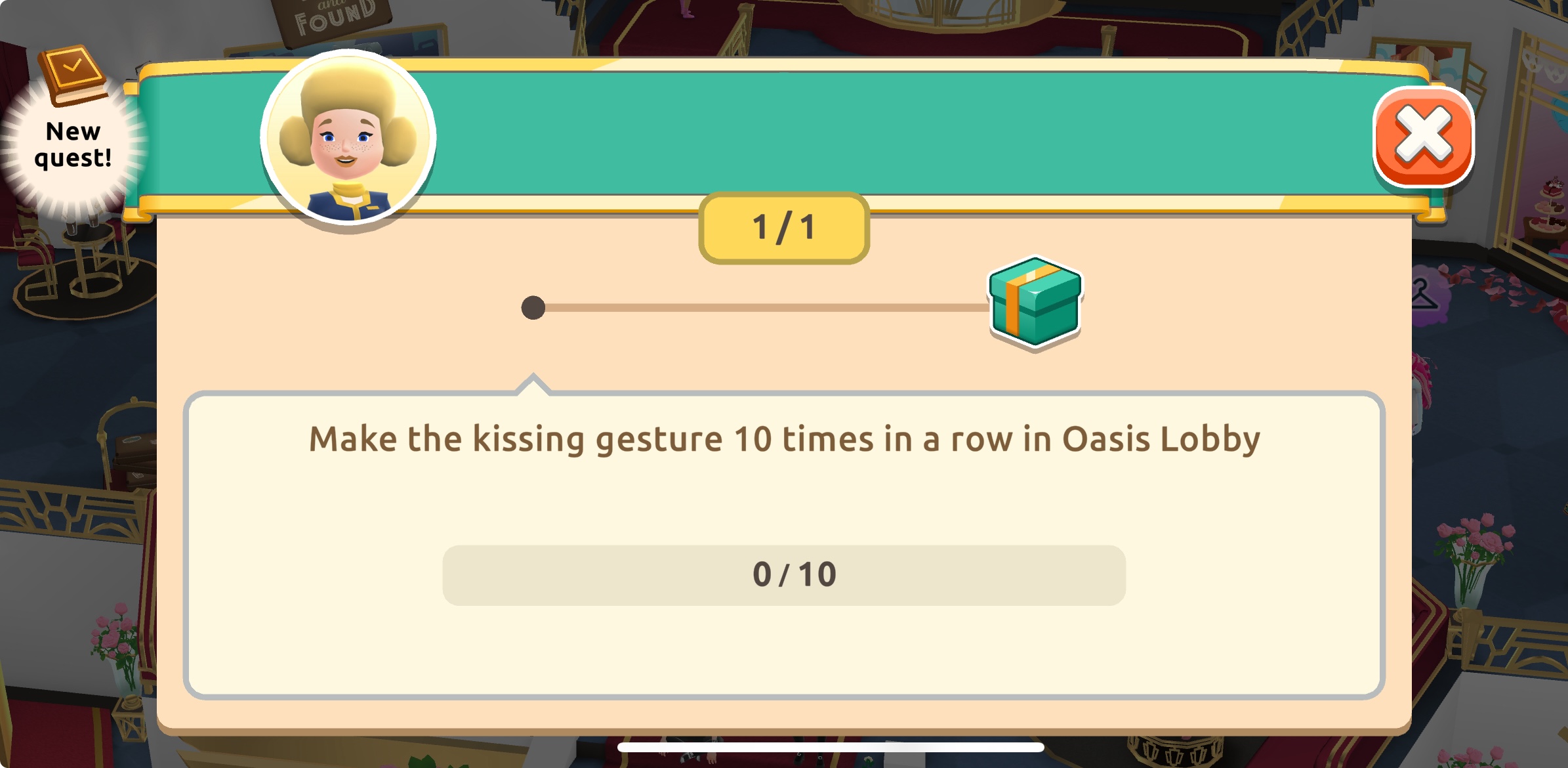Once you've started, you need to perform the “Flying Kiss” gesture ten times. When you've made the final gesture, you'll win 1000 coins and 20 cookies.