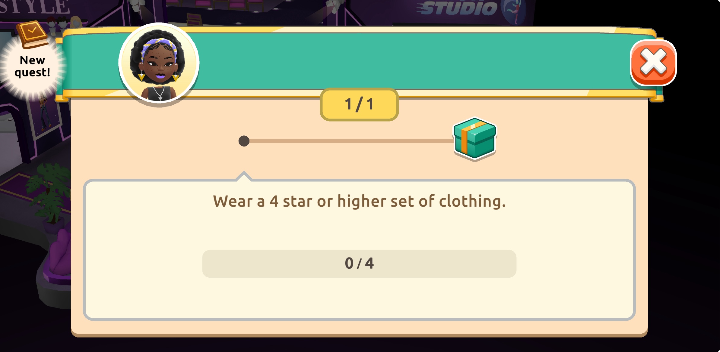To complete this quest, you must wear any 4 or 5-star set of clothes in your wardrobe.